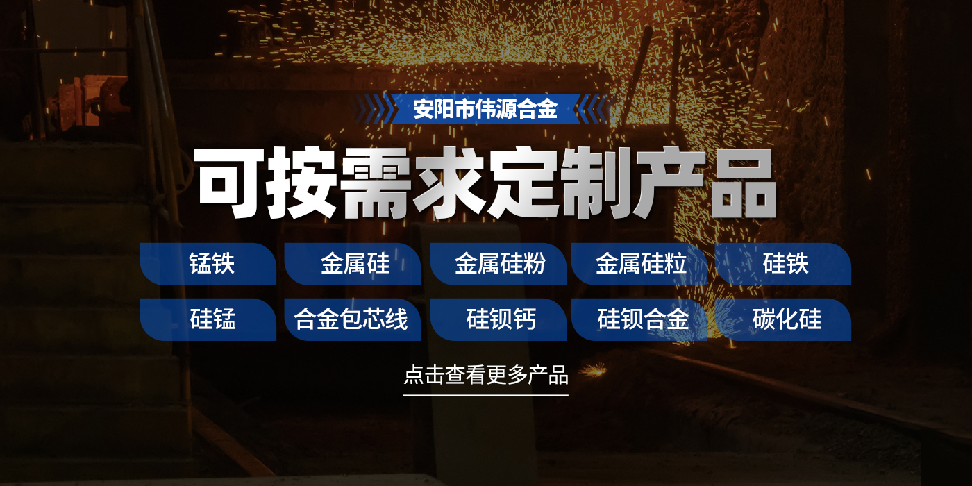 安陽(yáng)市偉源合金有限公司是從事鐵合金、耐火材料、硅制品加工銷售的廠家。主要產(chǎn)品有:錳鐵、 金屬硅 、 金屬硅粉、 金屬硅粒、 硅鐵、 硅錳、 合金包芯線、 硅鋇鈣、 硅鋇合金、 碳化硅、 硅碳合金球、 化鋁硅、 硅微粉、 硅鐵粉、 鋁鎂鈣等,我公司產(chǎn)品質(zhì)量穩(wěn)定可靠,均可按用戶要求進(jìn)行品質(zhì)保證,現(xiàn)貨供應(yīng)!我們成立以來(lái),堅(jiān)持“以質(zhì)量求生存,以誠(chéng)信求發(fā)展,以科技求效益”的經(jīng)營(yíng)理念。隨著公司的快速發(fā)展,我們